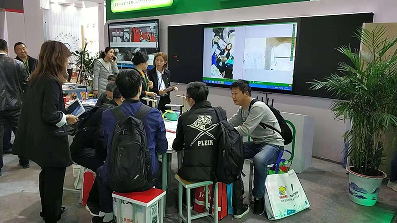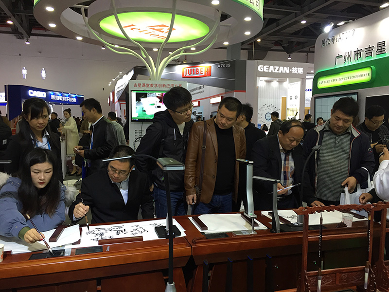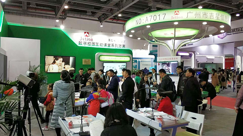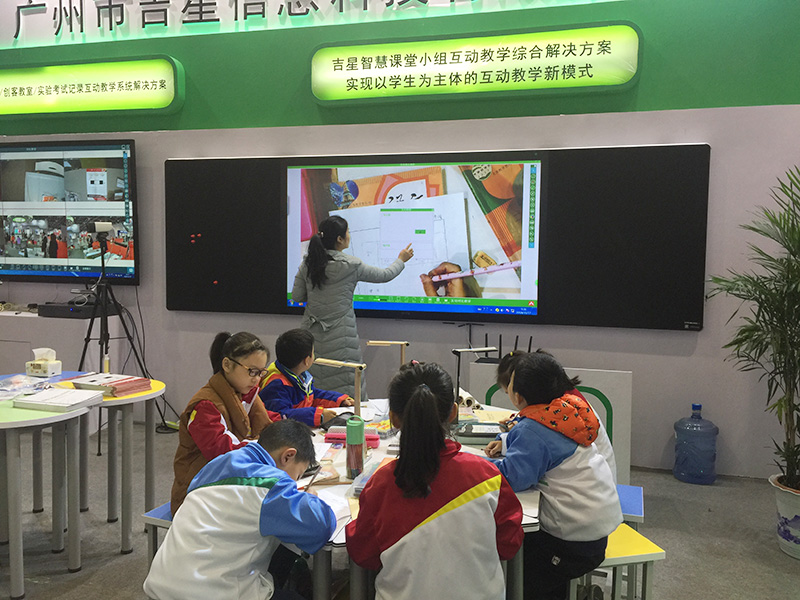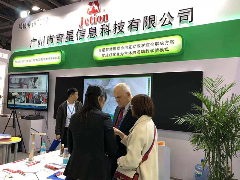 (參展觀眾咨詢吉星產(chǎn)品,并踴躍體驗(yàn)吉星互動(dòng)課堂解決方案)