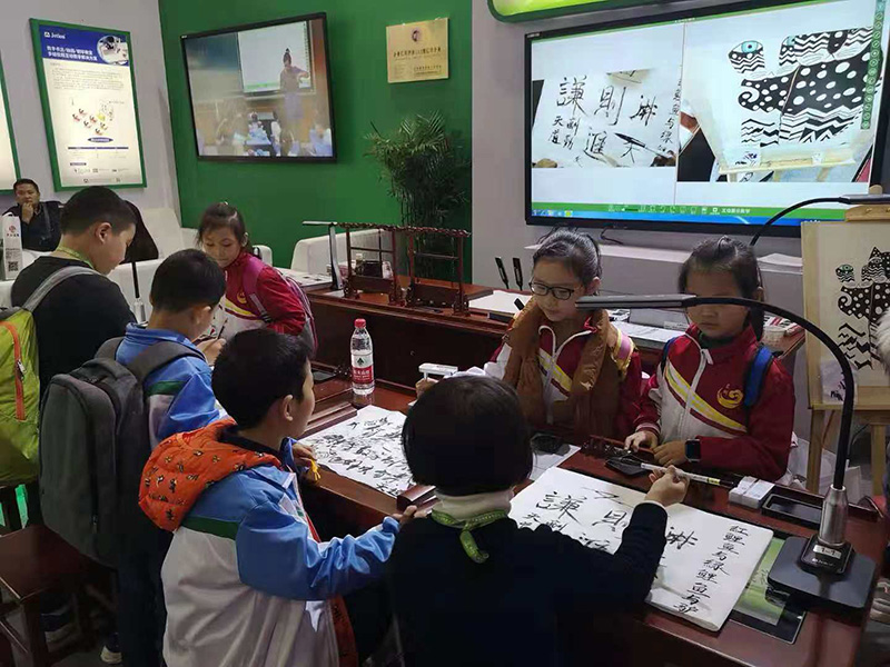 (展會(huì)現(xiàn)場(chǎng),書法愛好者一起體驗(yàn)吉星書法互動(dòng)教室)