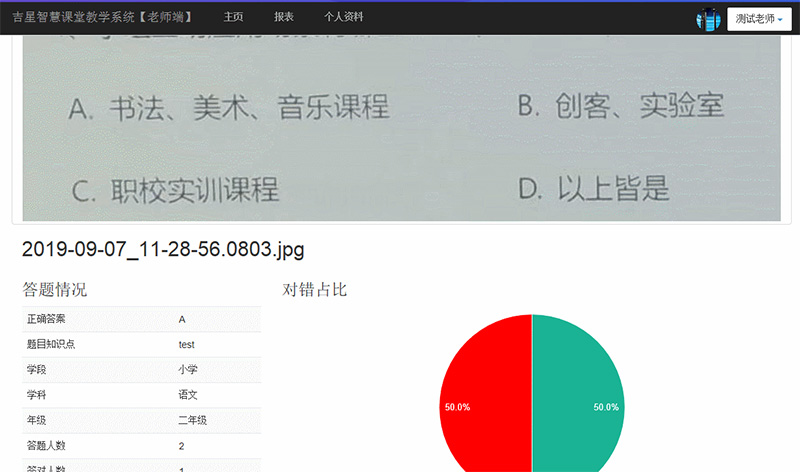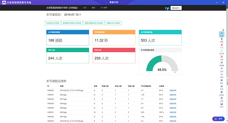 系統也會針對每道題的答題情況進行智能分析,方便于老師教學