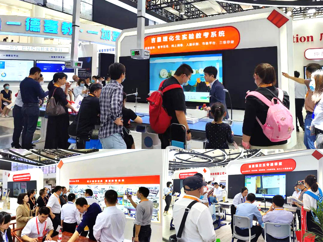 展會首日,吉星展出了3款核心產(chǎn)品方案:理化生實驗教考系統(tǒng)、強交互專遞課堂以及校園教學空間整體設計規(guī)劃方案,方案一經(jīng)亮相就火爆全場。