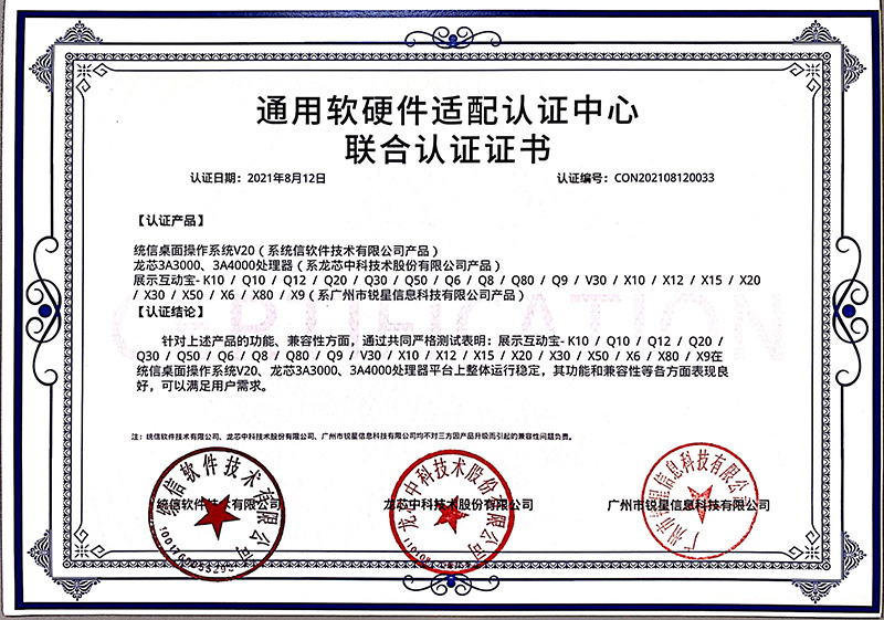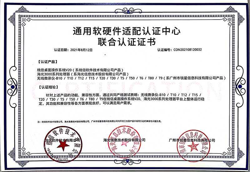 龍芯認(rèn)證證書(展示互動(dòng)寶、無線微錄儀)