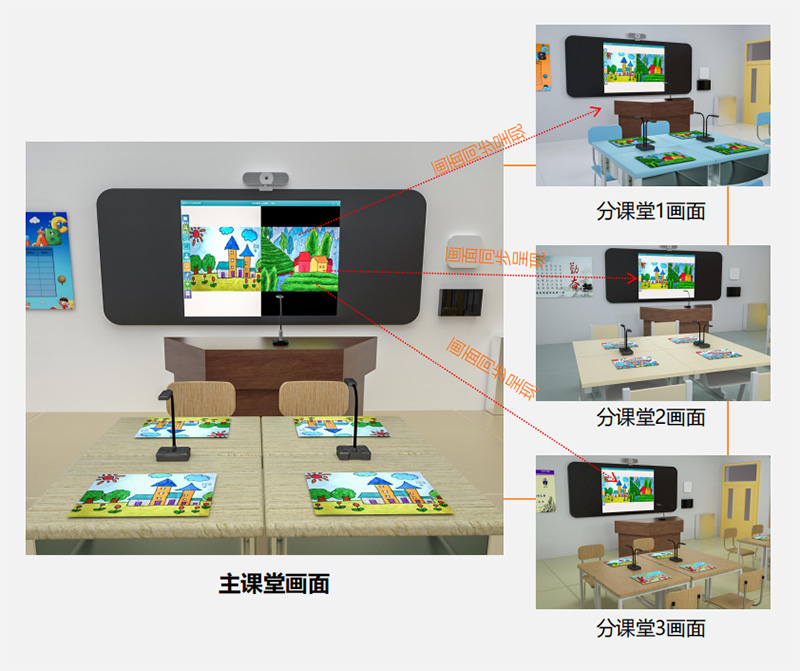 ? 可調(diào)取主課堂、分課堂一或分課堂二的單個畫面進行展示