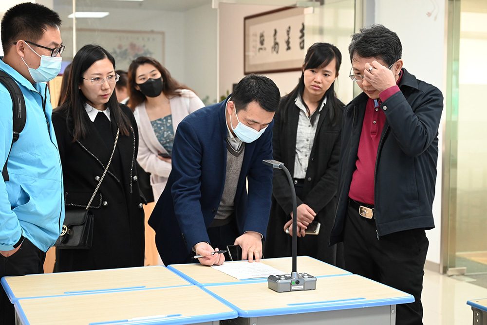 在參觀教學(xué)展區(qū)時,胡副院長一行認(rèn)真聽取了吉星董事長舒華俊對于系統(tǒng)的介紹,觀看了吉星強(qiáng)交互專遞課堂在不同教學(xué)場景下的真實運(yùn)行情況。