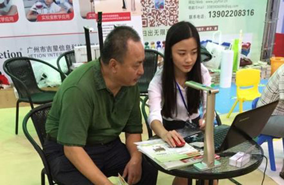 在此次展會中,吉星科技很榮幸受邀參與2015年海南教育裝備發展論壇的演講。我們在眾多教育界的領導面前詳細介紹了吉星科技全國首創的專利產品--無線視頻展臺,在論壇結束后,三亞教育局,海南省電教館,以及??谑薪鸨P實驗學校校長都對吉星無線視頻展臺表示了認可。