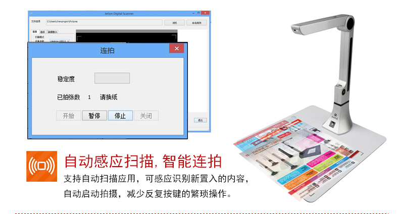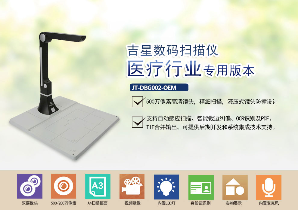 吉星數碼掃描儀醫療行業專用版 JT-DBG002-OEM a4幅面 500萬像素 帶硬墊底座