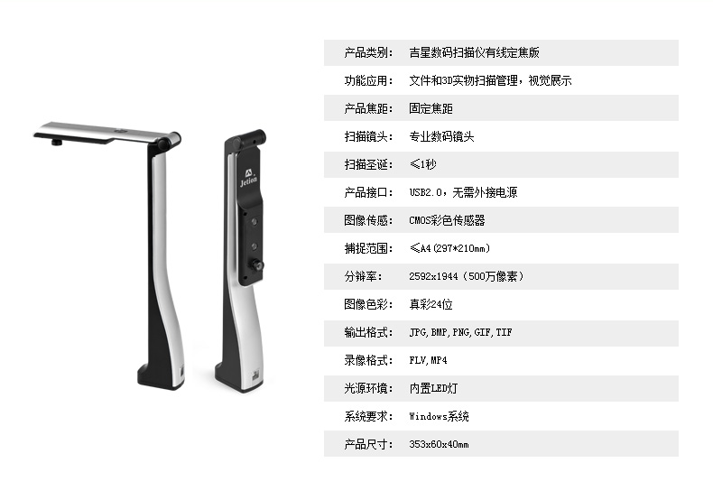 吉星便攜辦公助手500萬(wàn)像素高清掃描 A4幅面